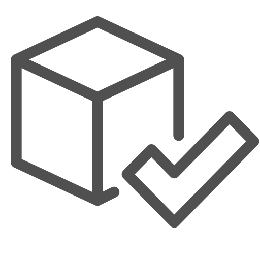 outline simple icon: 3d box, abstract, block, checkmark, component