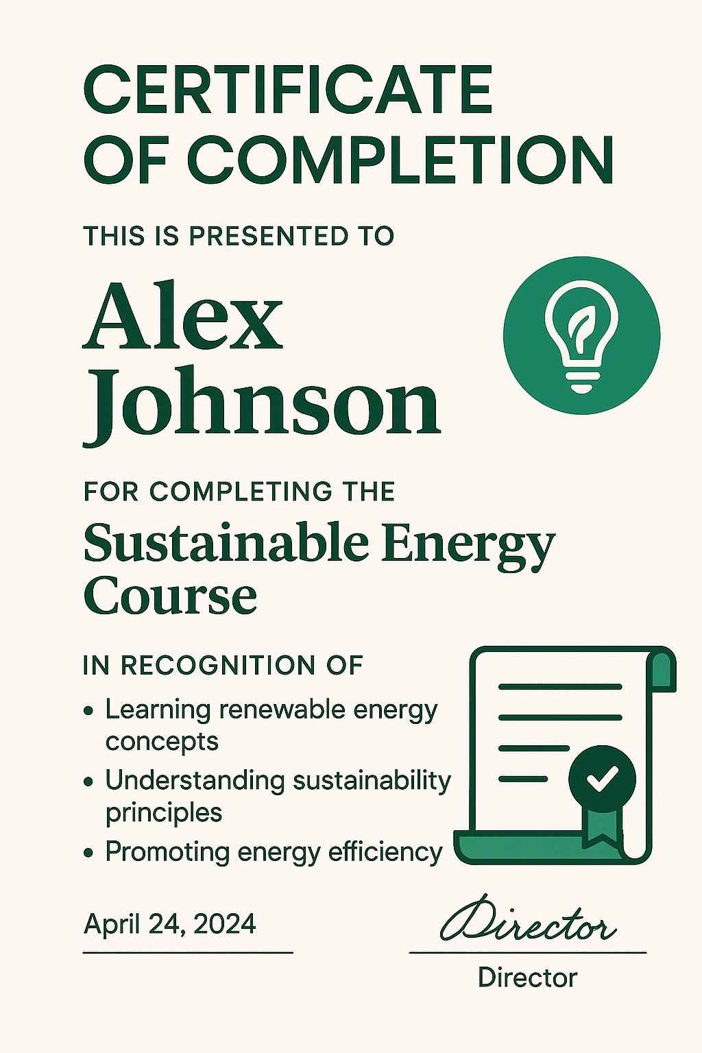Certificate of Completion for Sustainable Energy Practices