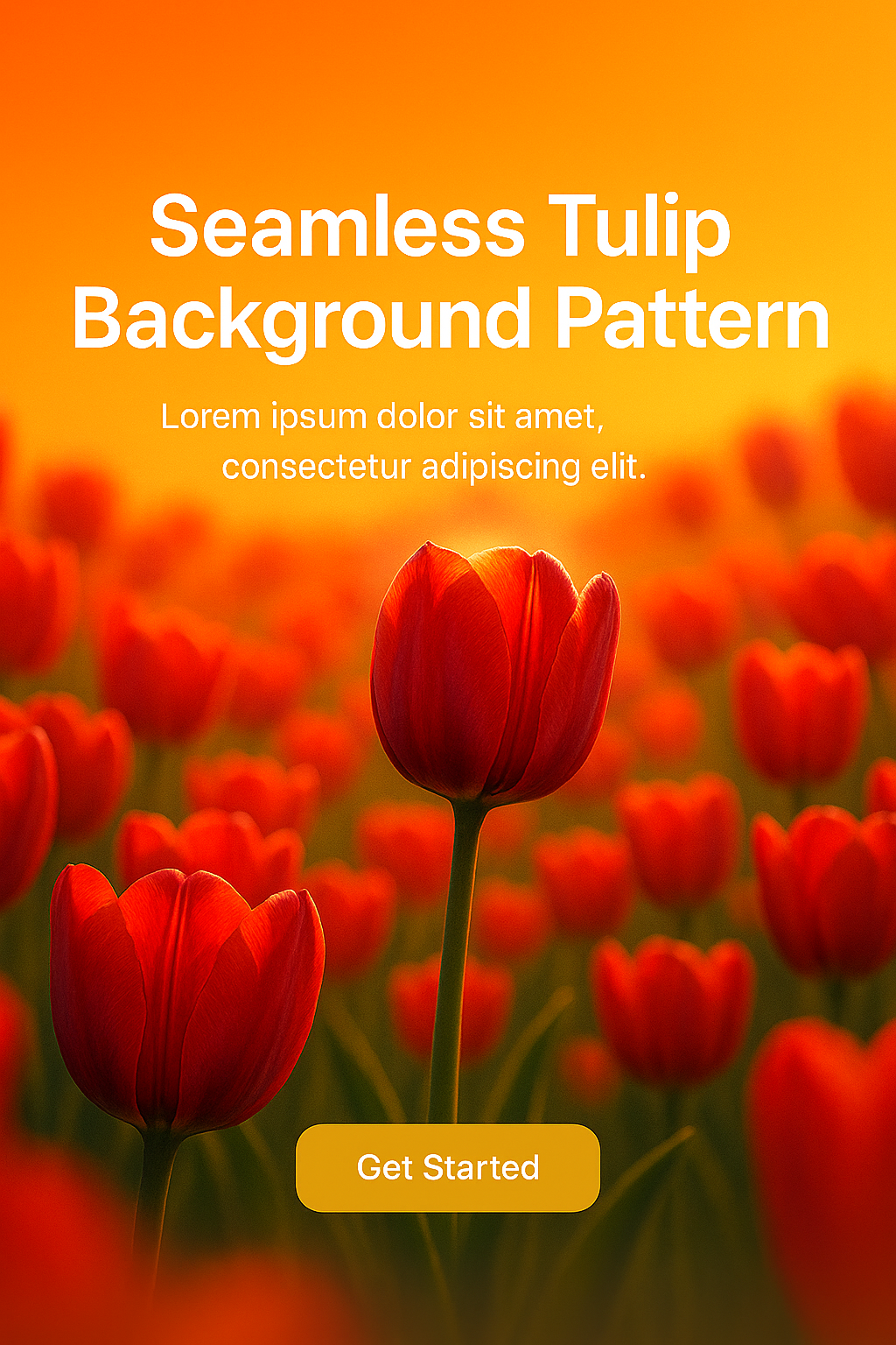 This image features a seamless background pattern of vibrant red tulips against a warm orange gradient. Ideal for use in digital designs and marketing materials.