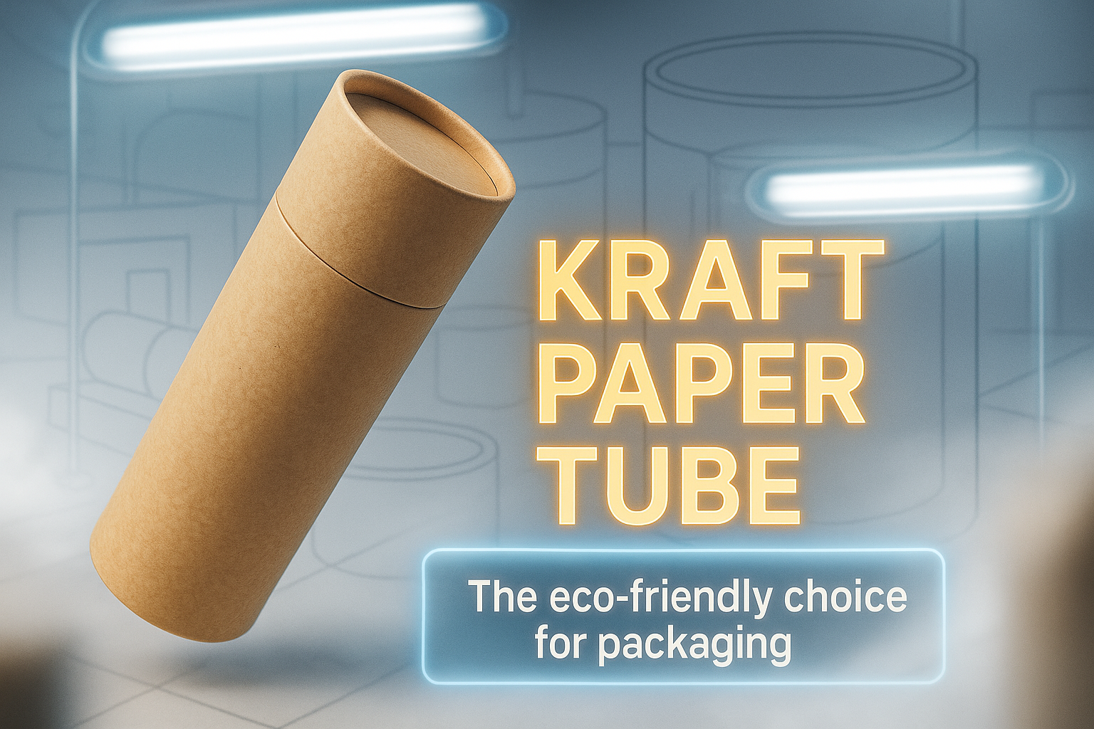 Stylish graphic showcasing a kraft paper tube, emphasizing its eco-friendly attributes. Ideal for marketing sustainable packaging solutions.