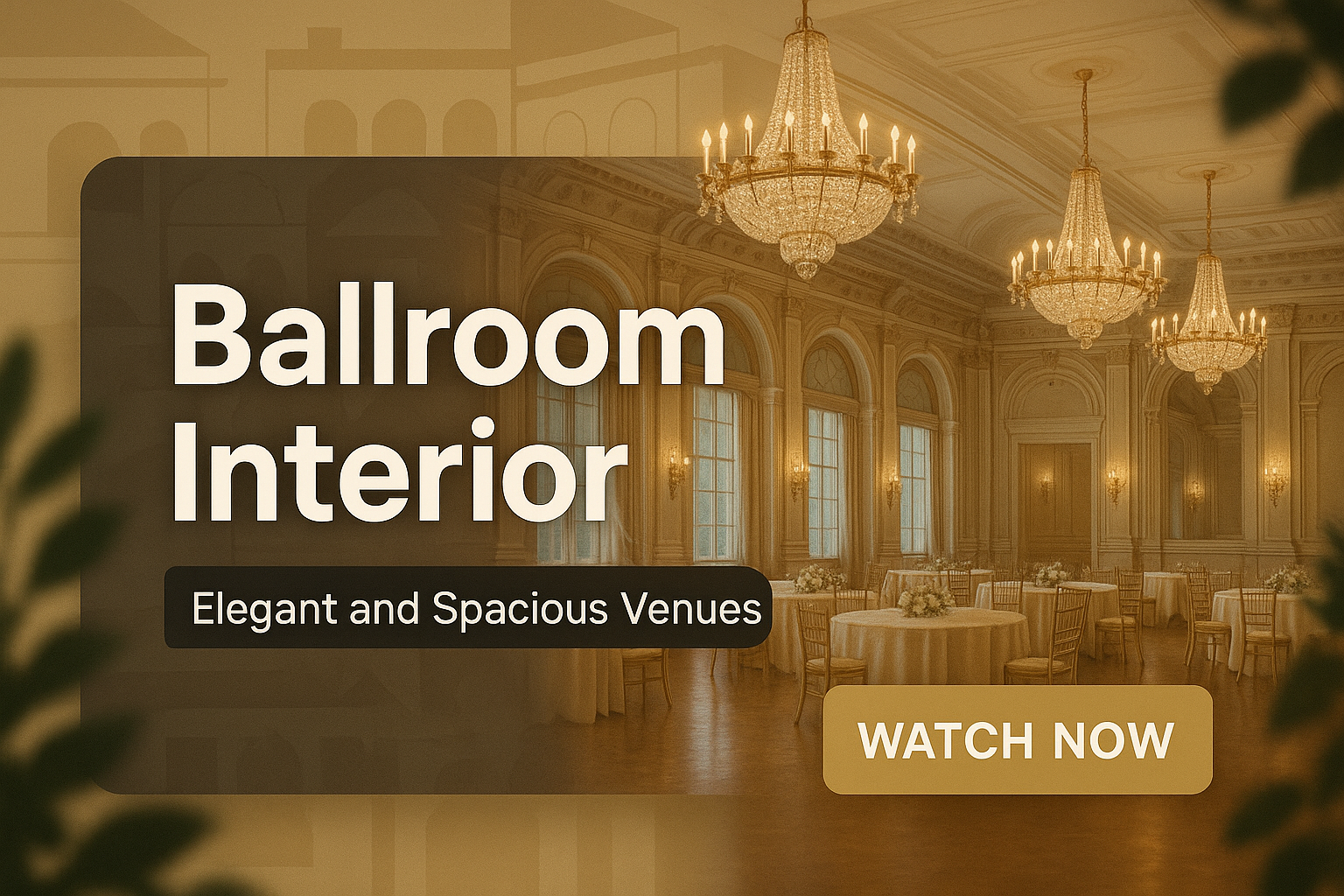 Elegant Ballroom Interior Showcase with Chandelier Lighting