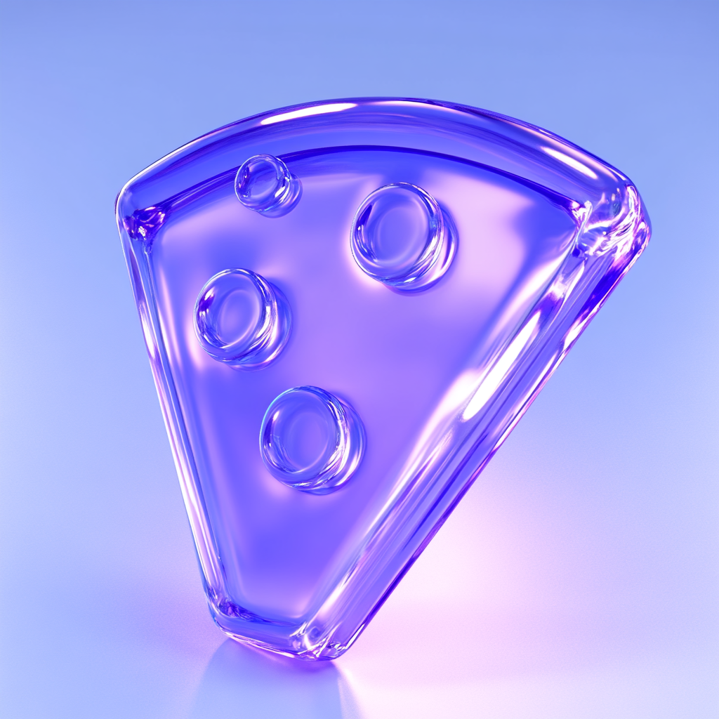 A modern and artistic representation of a cheese slice, crafted from translucent glass with a distinctive purple hue. Ideal for showcasing creativity in culinary or design contexts.