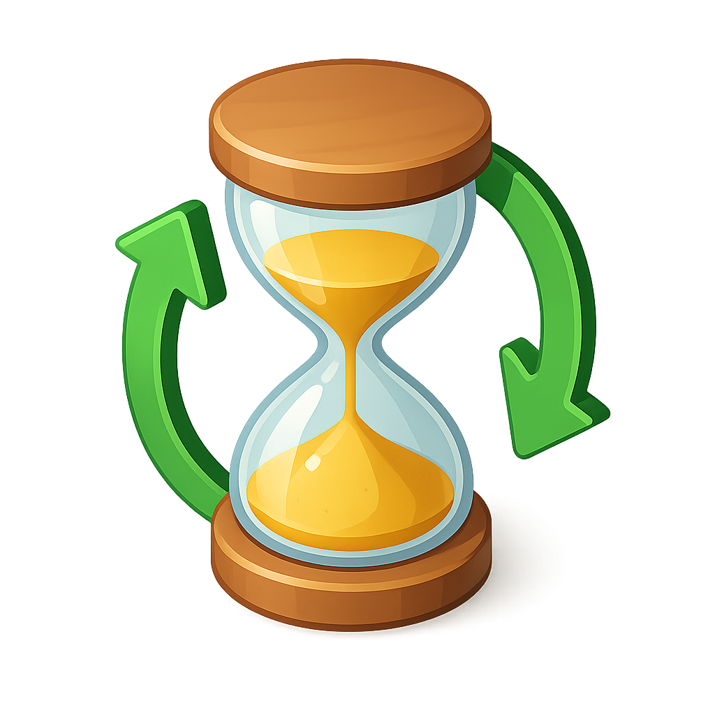 3D Hourglass Icon with Circular Arrow Design