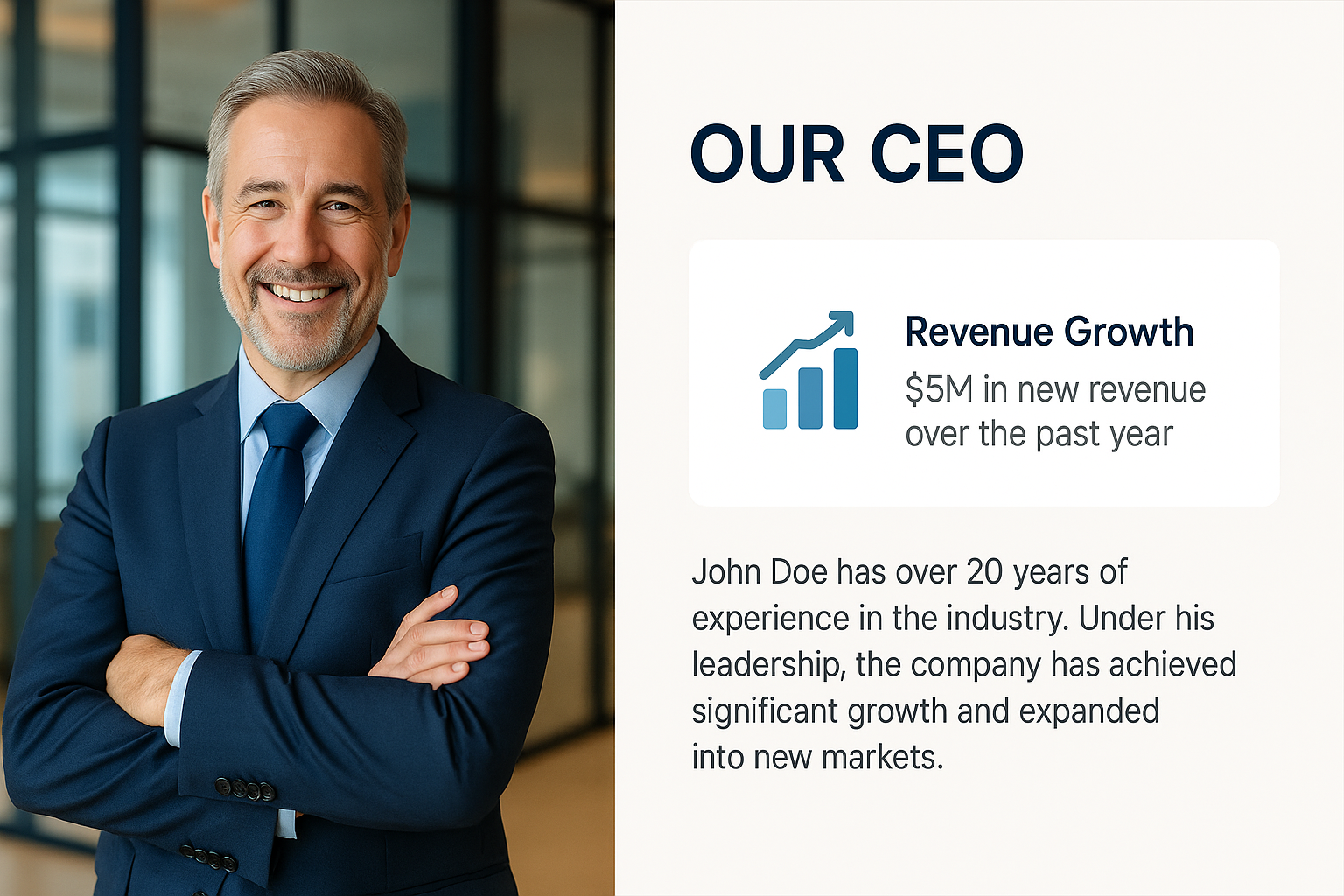 Professional Corporate Profile Graphic Featuring CEO Overview