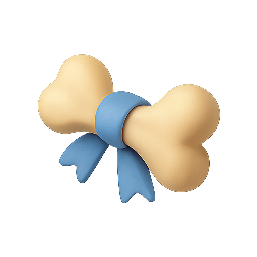 A playful, cartoon-style illustration of a dog bone adorned with a blue ribbon. This design is ideal for pet-related branding, products, or marketing materials.