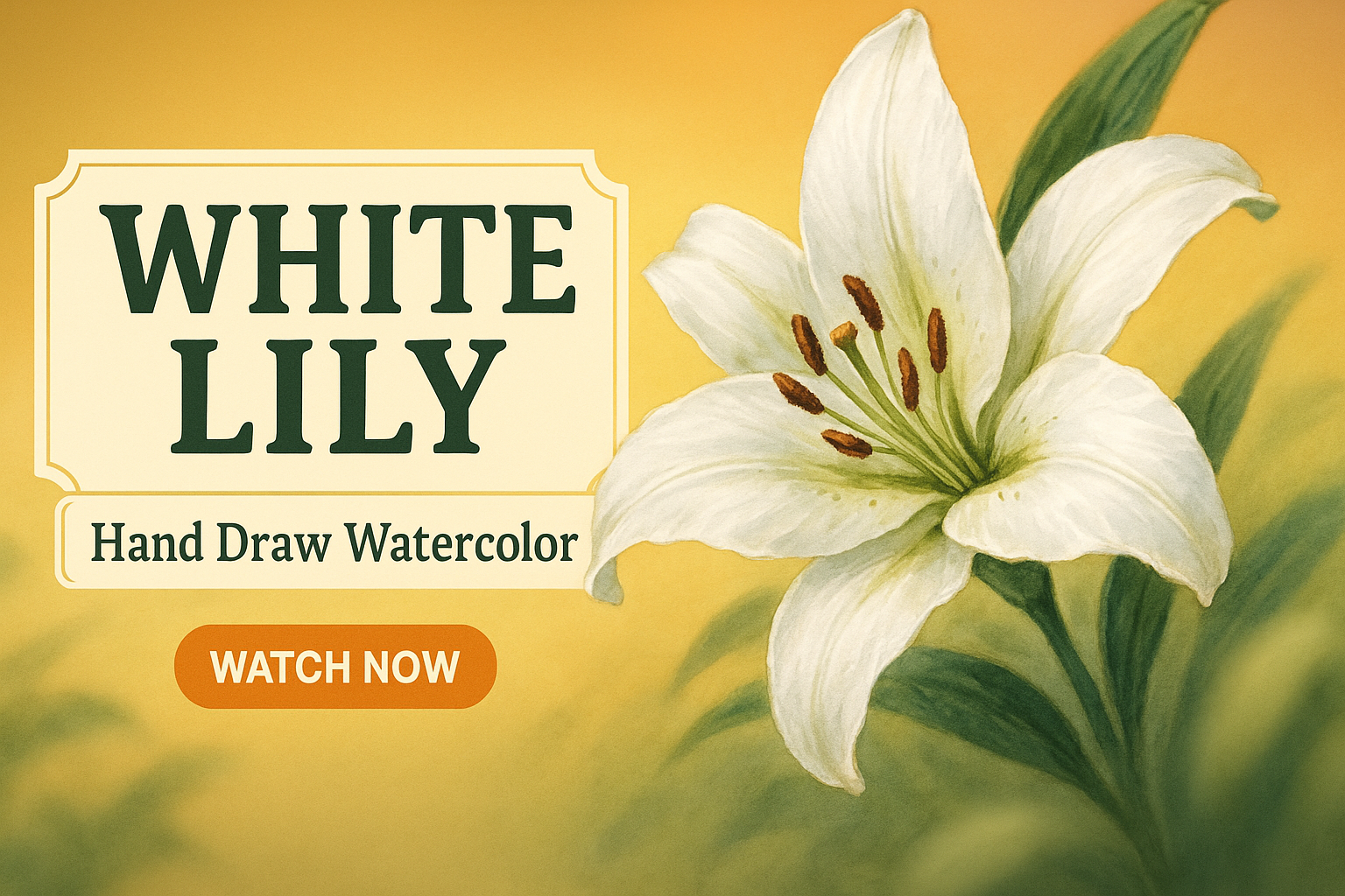 /Collection: /by davooda/Type: PNG/Beautiful hand-drawn watercolor illustration featuring a white lily, designed for floral or gardening content. Ideal for online promotions or educational materials.