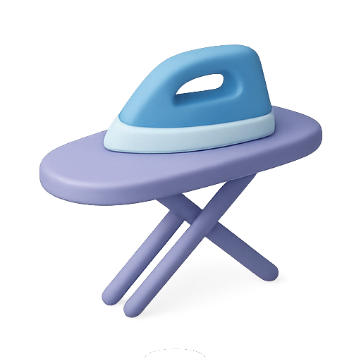 /Collection: /by davooda/Type: PNG/Colorful and playful illustration of a modern iron placed on a matching ironing board, suitable for home appliance promotions or children's educational materials.