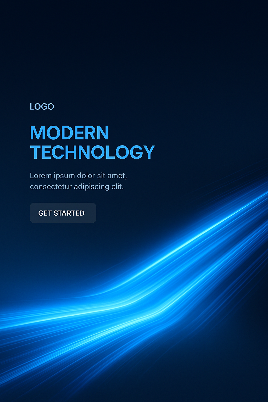 /Collection: /by davooda/Type: PNG/A sleek black and blue abstract background featuring glowing blue light effects, designed for modern technology themes. Includes space for text and action buttons.