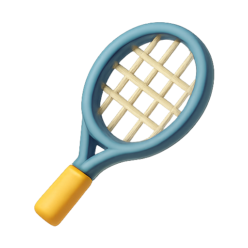 /Collection: /by davooda/Type: PNG/A vibrant 3D rendering of a tennis racket featuring a playful design. This graphic is suitable for sports-related content, especially in children's materials or fun marketing campaigns.