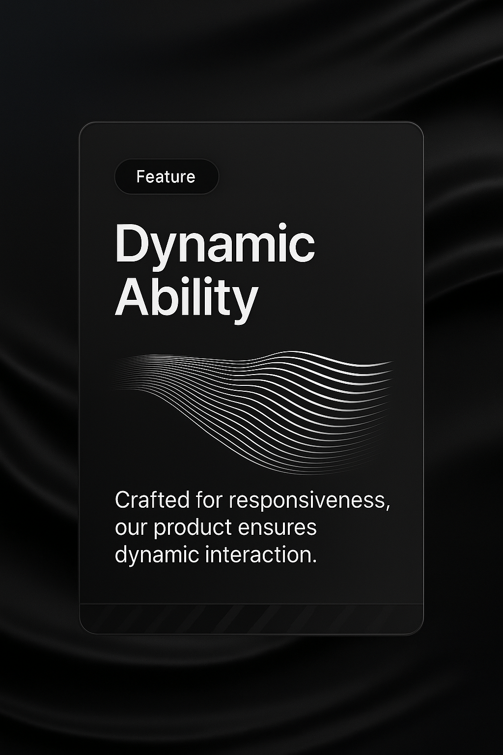 /Collection: /by davooda/Type: PNG/An abstract wallpaper featuring smooth, flowing black waves. The design includes a feature card titled 'Dynamic Ability' with a modern layout, emphasizing sleek aesthetics.