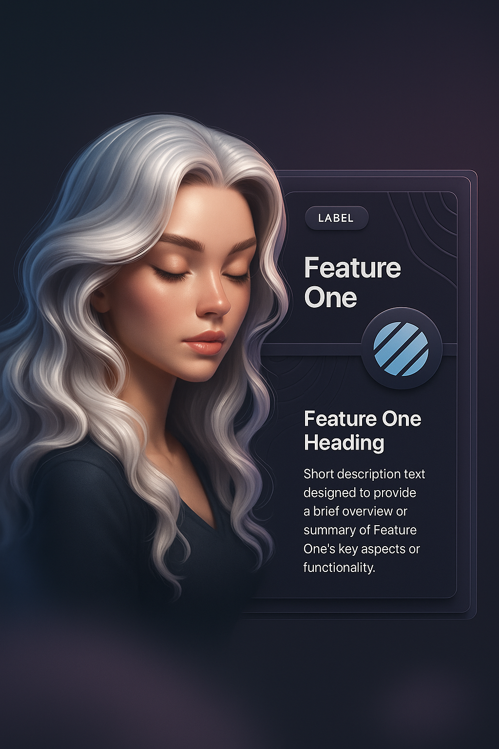 /Collection: /by davooda/Type: PNG/This digital illustration features a young woman with long, glossy blonde hair, set against a dark background. The composition includes a label and feature heading integrated into the design.