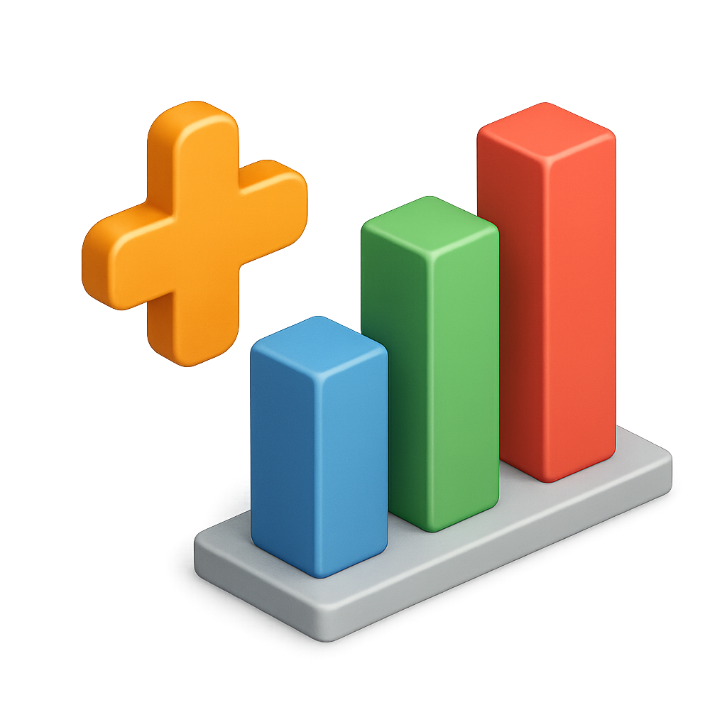 3D Bar Graph Icon with Presentation Board and Plus Sign