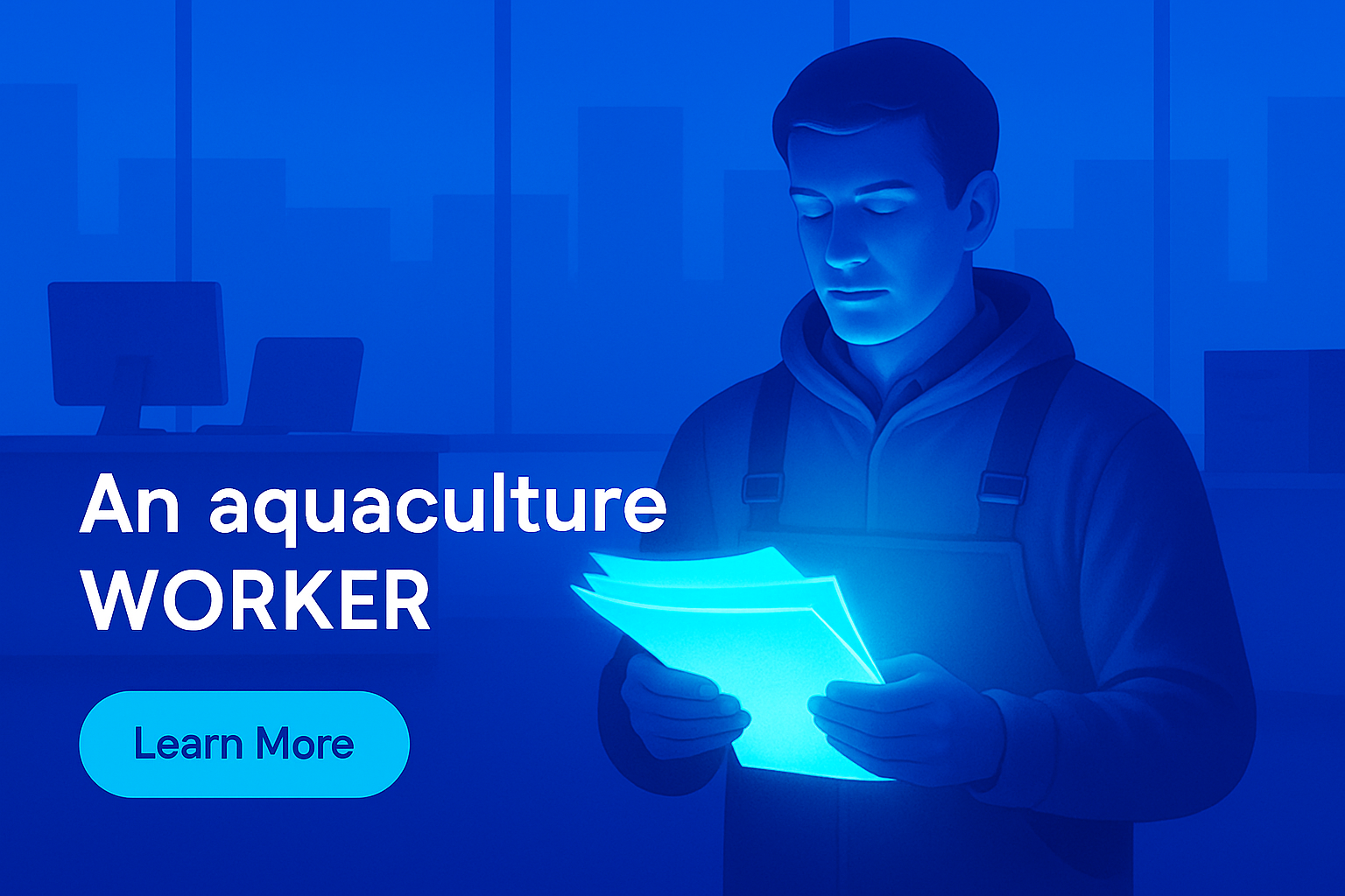 /Collection: /by davooda/Type: PNG/A digital illustration of an office worker examining glowing documents in a contemporary office environment. The worker is dressed in a suit, with a blue-toned background that suggests a professional atmosphere.