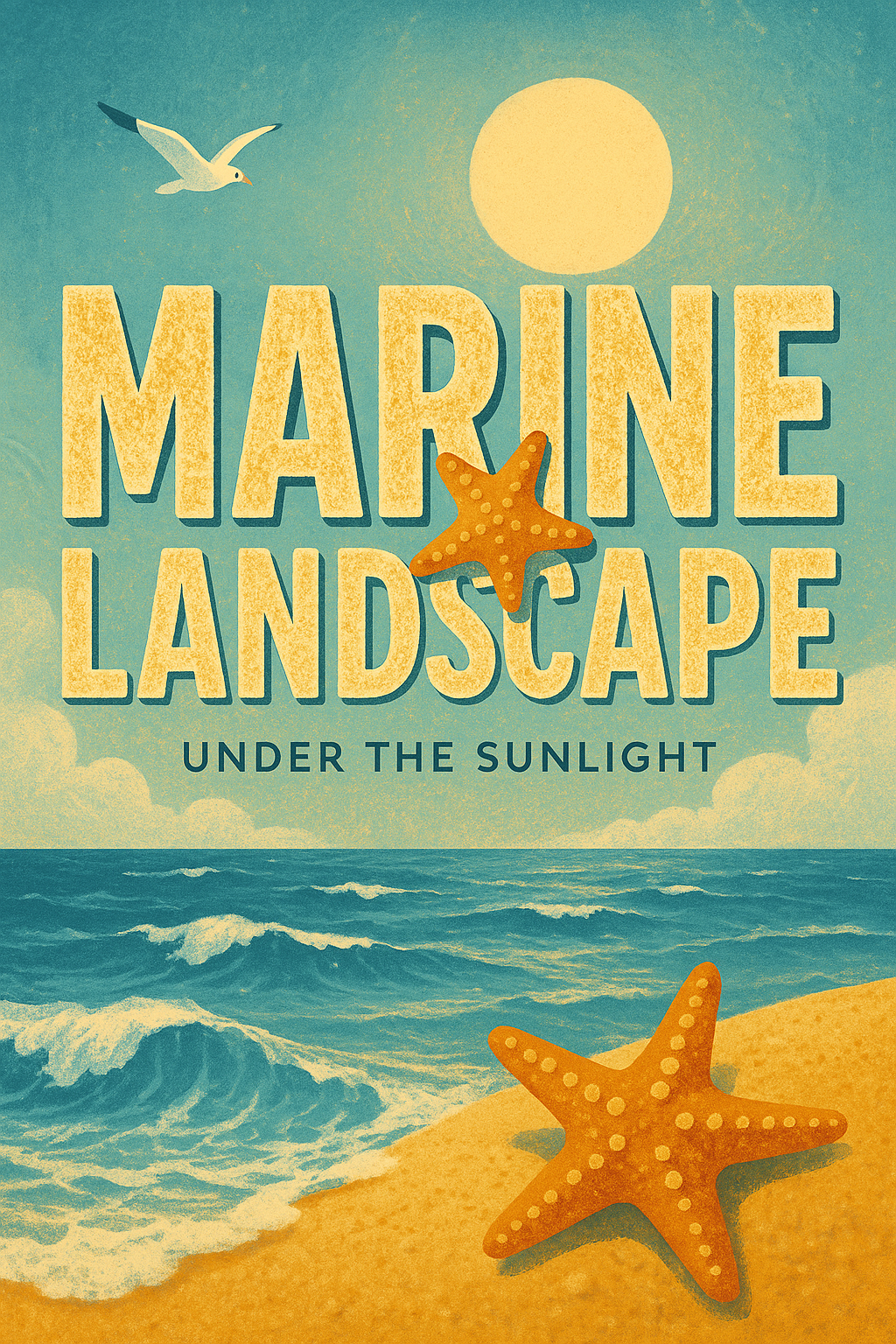 Vibrant Marine Landscape Illustration with Sun and Starfish