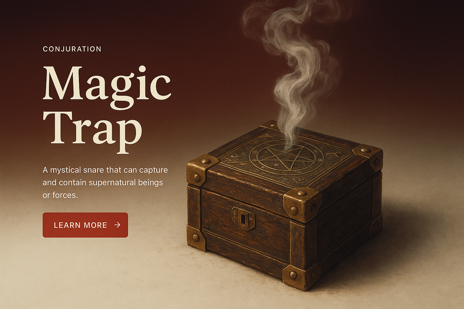 A captivating illustration of a mystical trap box with smoke rising, featuring a stylish design. Includes a clear title and text block for an engaging web layout.