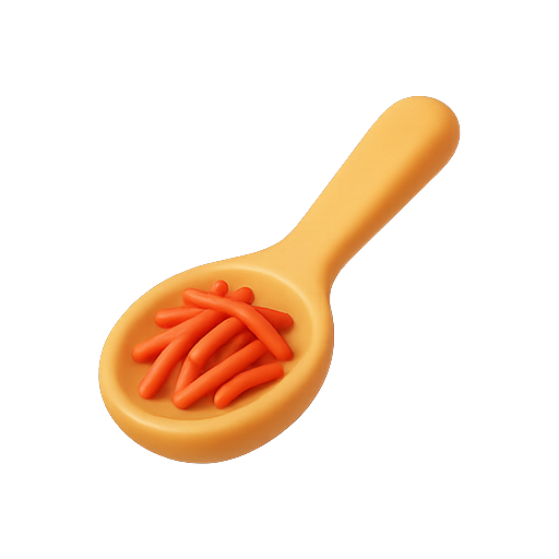 A vibrant plastic spoon filled with orange play food, ideal for children's playsets or educational toys. The design emphasizes fun and creativity.