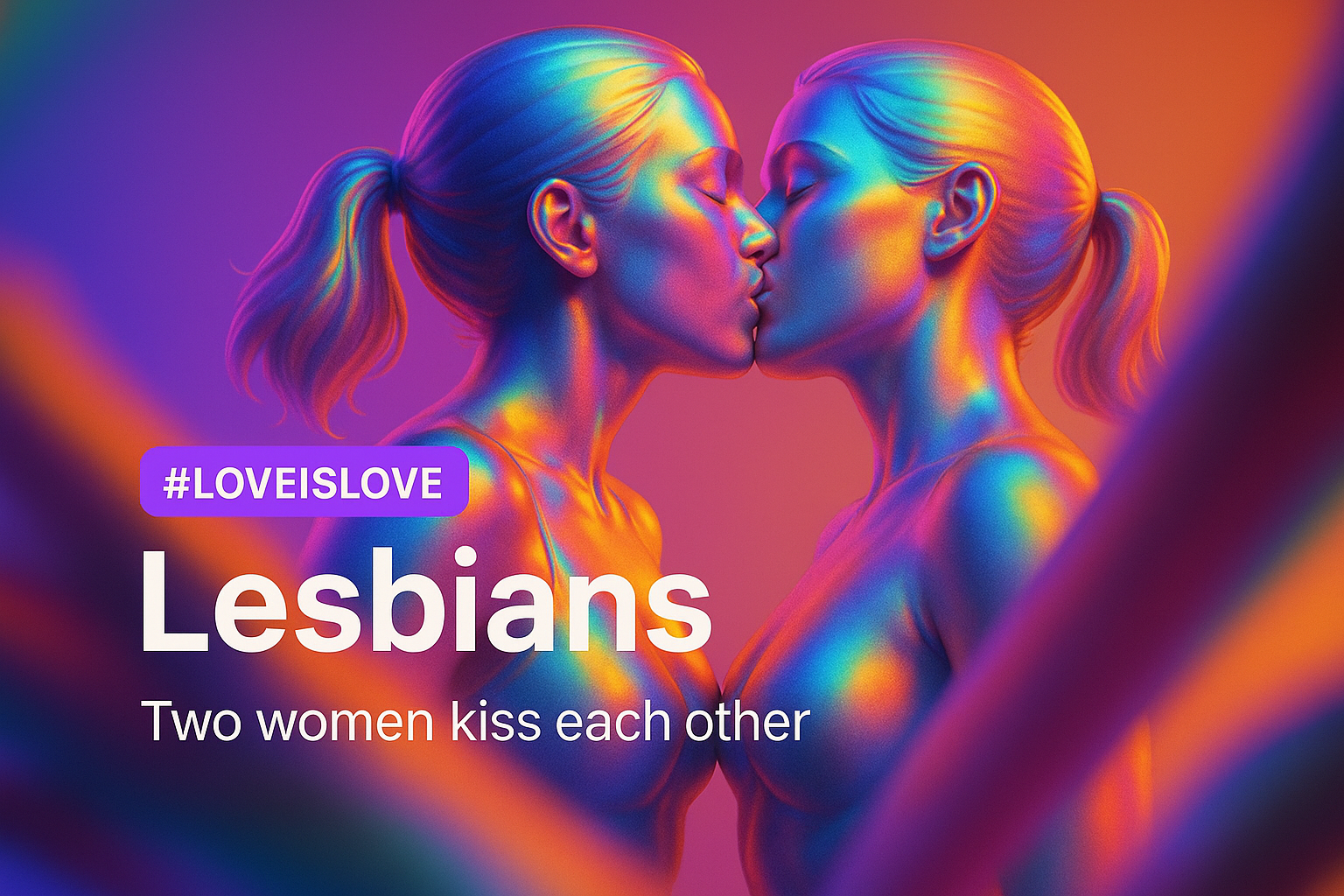 /Collection: /by davooda/Type: PNG/A stunning digital artwork showcasing two women kissing, represented in vibrant colors and a surreal style. Perfect for campaigns celebrating love and LGBTQ+ pride.