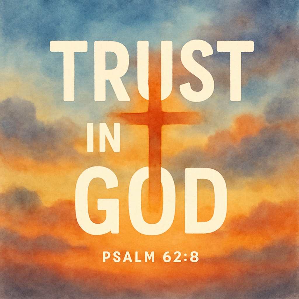 This graphic features a serene watercolor background with a cross and inspirational text, ideal for religious or motivational contexts.