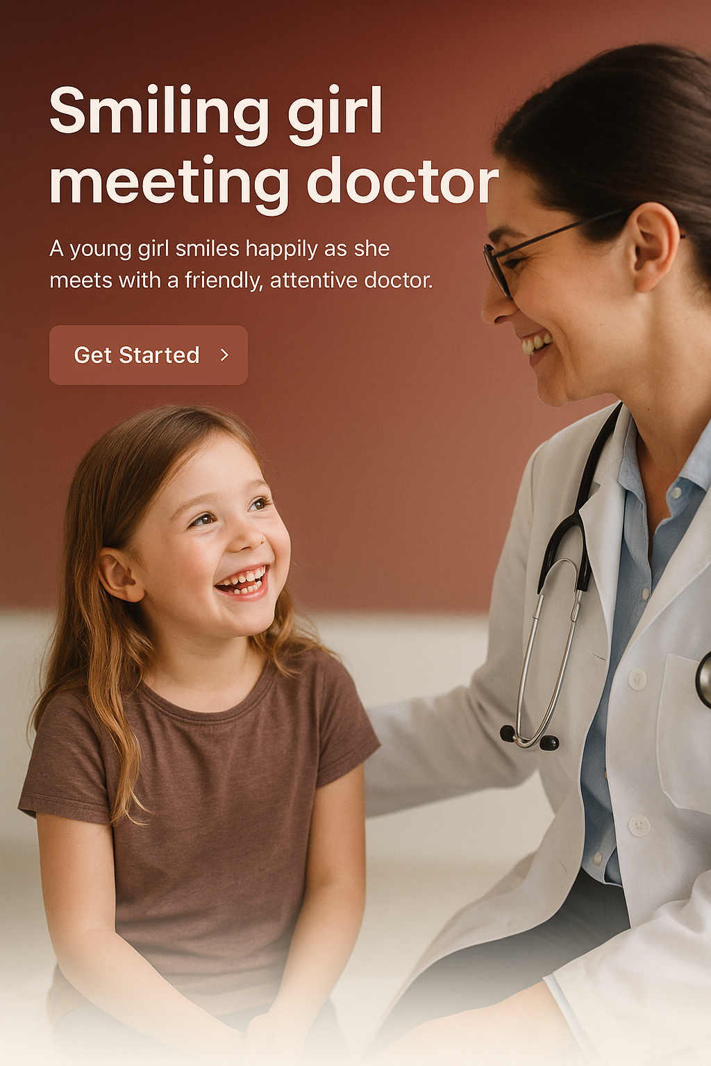/Collection: /by davooda/Type: PNG/A young girl joyfully smiles while meeting a friendly doctor. The warm, inviting atmosphere highlights the caring interaction, showcasing a moment of comfort and trust.