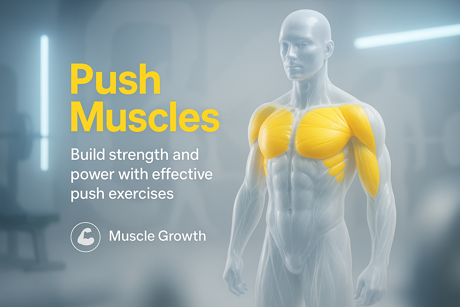 Detailed graphic representation of push muscles highlighting strength and power exercises. Ideal for fitness guides and muscle training resources.