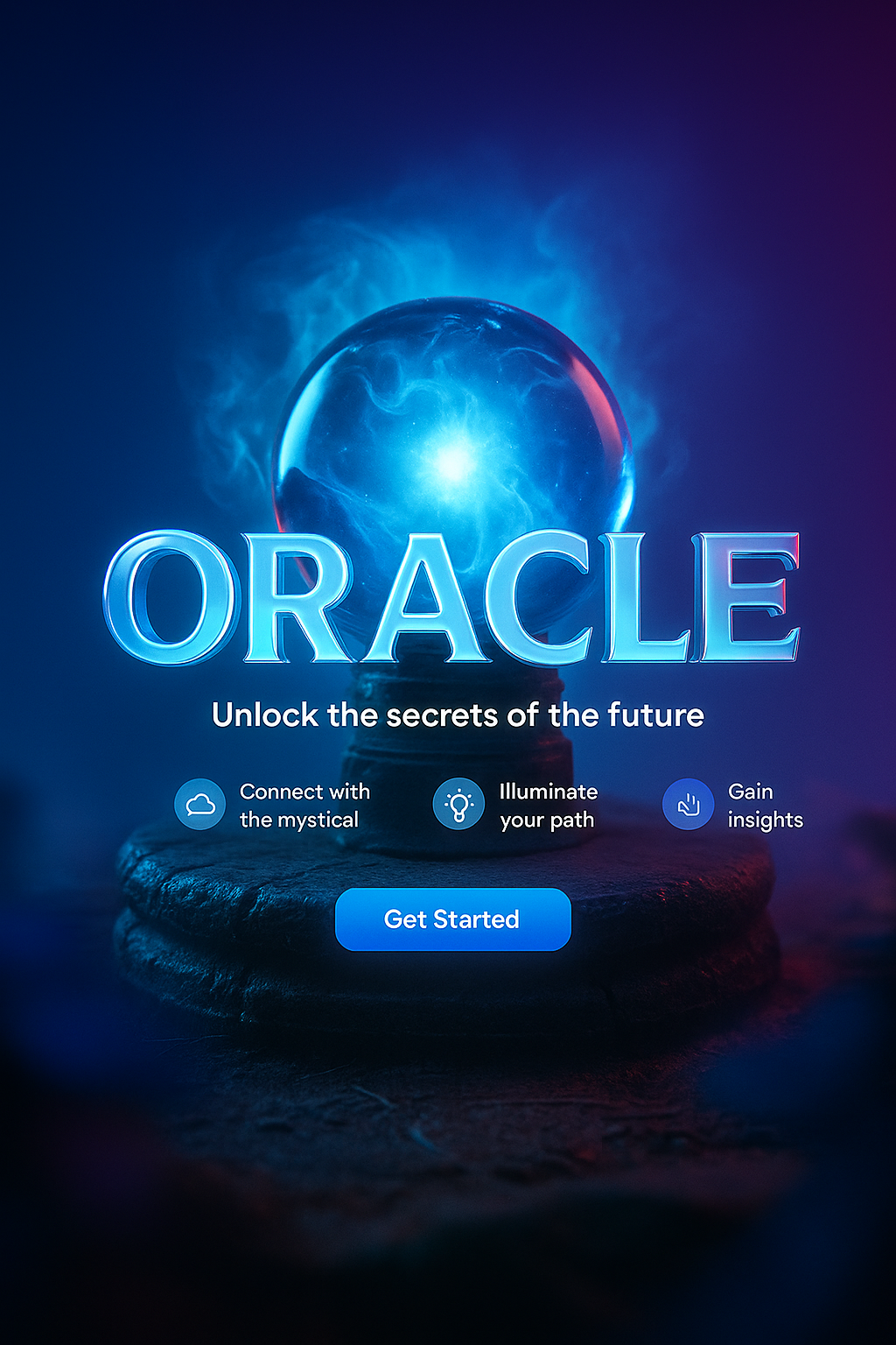 /Collection: /by davooda/Type: PNG/A visually striking landing page design featuring a glowing orb, with the title 'ORACLE' in volumetric text. The background has a smooth gradient, creating an engaging atmosphere.