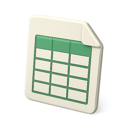 Stylized 3D icon depicting a spreadsheet with a grid layout, designed for digital applications. Ideal for software tutorials or tech-related content.