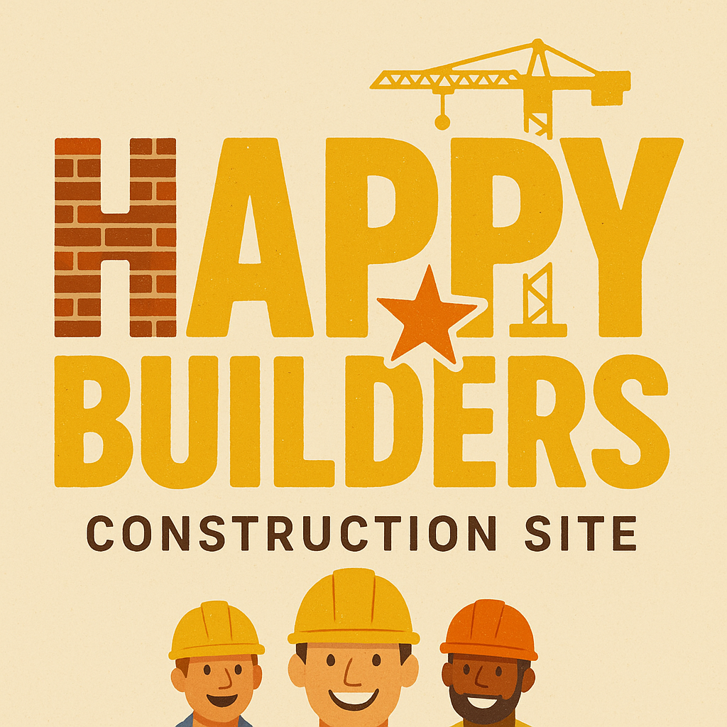 /Collection: /by davooda/Type: PNG/A vibrant illustration showcasing happy builders at a construction site. The design features a friendly and approachable style, perfect for children's educational materials or construction-themed promotions.
