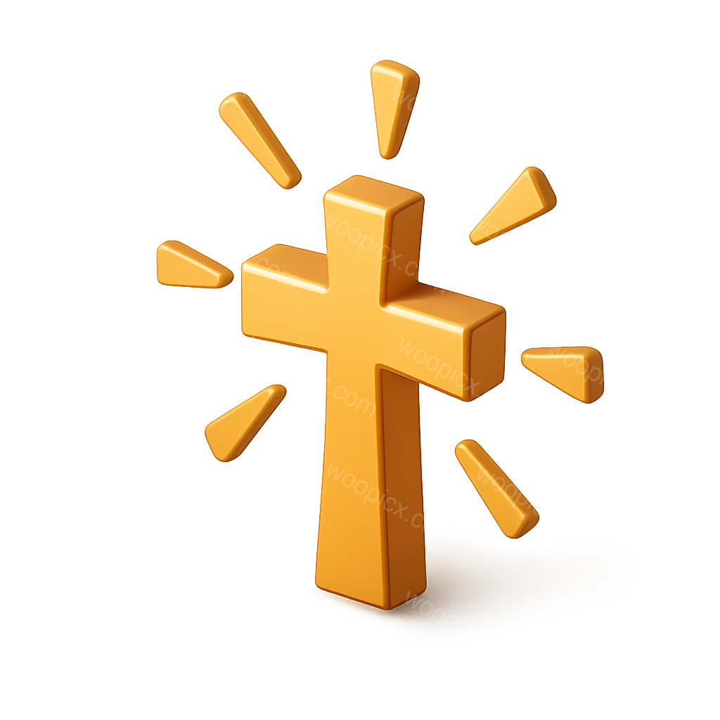 /Premium/Collection: /by davooda/Type: PNG/A vibrant 3D representation of a Constantine cross, featuring a glossy, golden finish with radiant elements emanating from it, set against a soft gradient background.