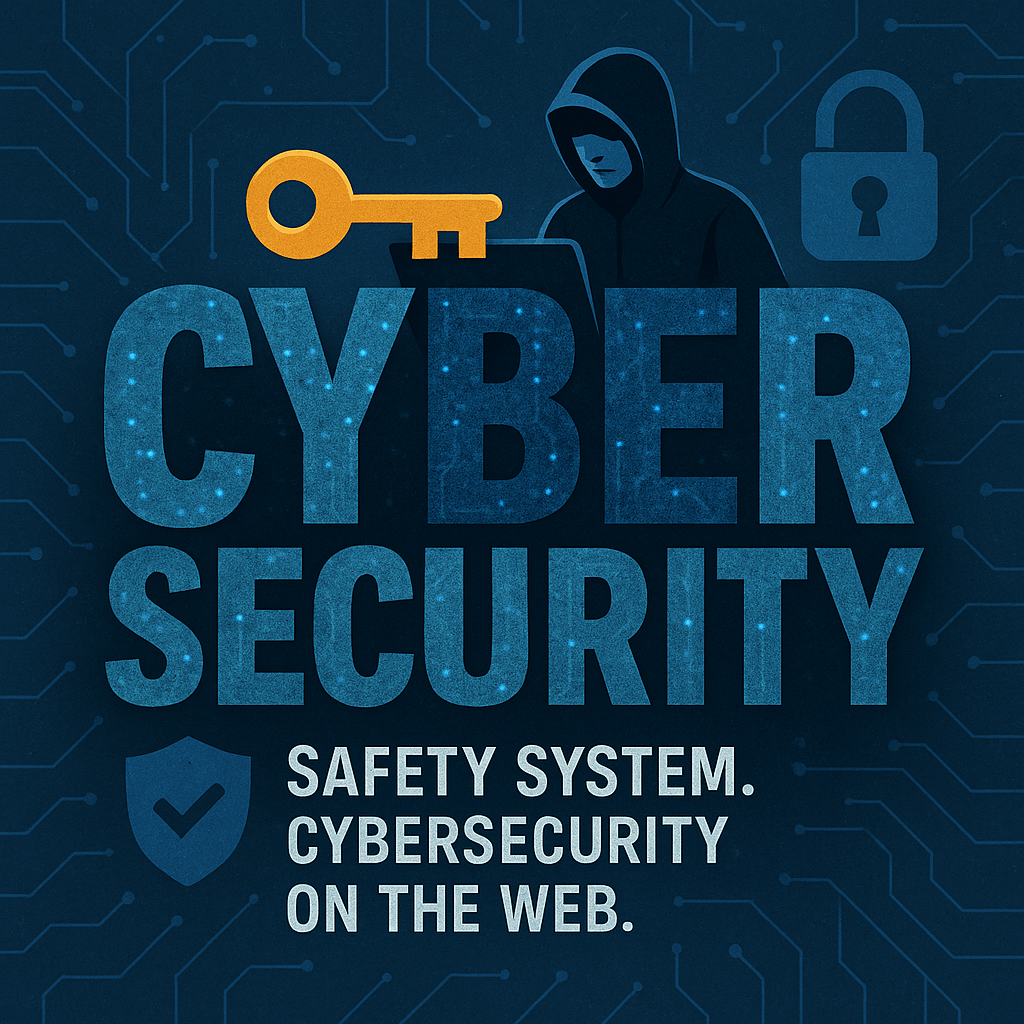 /Collection: /by davooda/Type: PNG/Informative graphic focused on cybersecurity, featuring a hooded figure, key, and shield motifs. It aims to raise awareness about online safety and security measures.