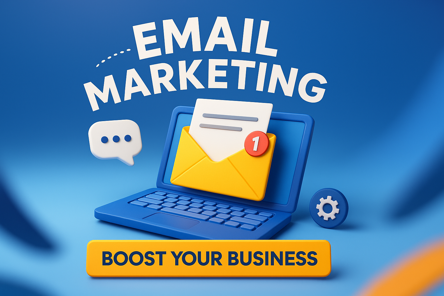 A vibrant 3D illustration showcasing email marketing concepts. Ideal for social media posts or promotional banners aimed at business growth.