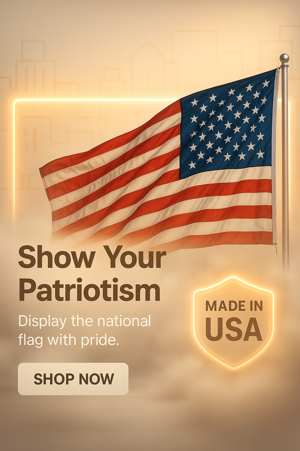 Engaging promotional graphic showcasing the American flag, designed to evoke patriotism. Ideal for advertising flag-related products with a modern aesthetic.