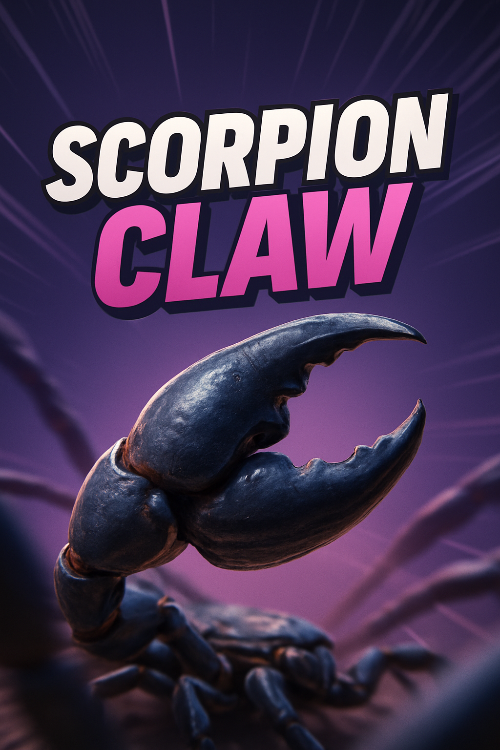 A striking 3D illustration of a scorpion claw, emphasizing dynamic angles and bold typography. The background features a smooth gradient, adding depth to the composition.