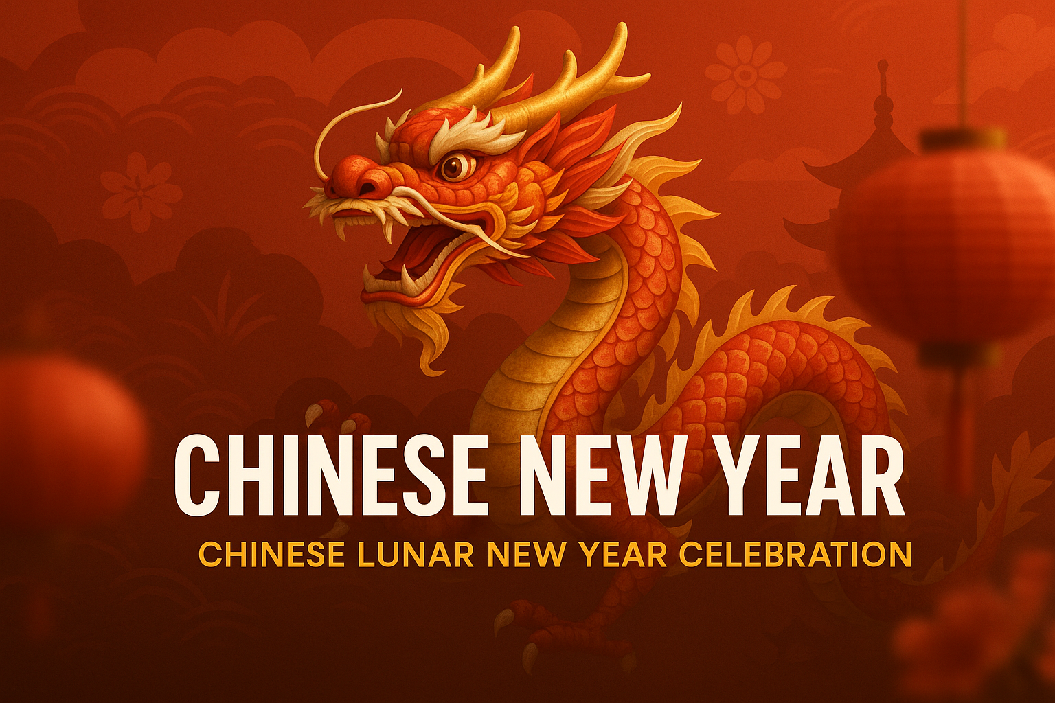 Vibrant Chinese New Year Celebration Graphic Featuring a Dragon