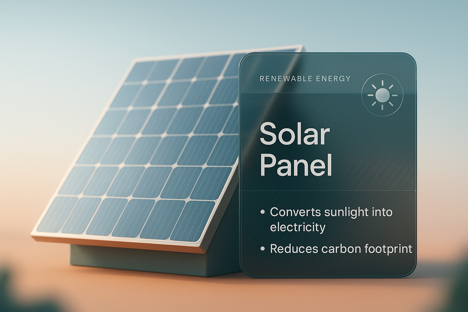 /Collection: /by davooda/Type: PNG/A 3D illustration of a solar panel with a sleek design, featuring a translucent overlay that provides essential information. The background transitions smoothly to a soft gradient, enhancing the modern aesthetic.