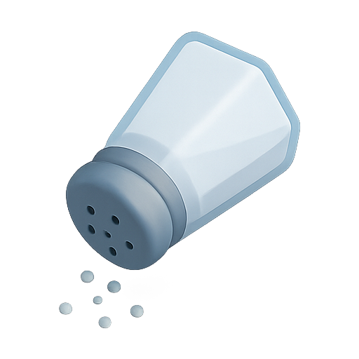 /Collection: /by davooda/Type: PNG/A digital illustration depicting a salt shaker tipped over, with salt granules spilling out. The graphic is simplistic and clean, ideal for culinary or cooking-themed content.