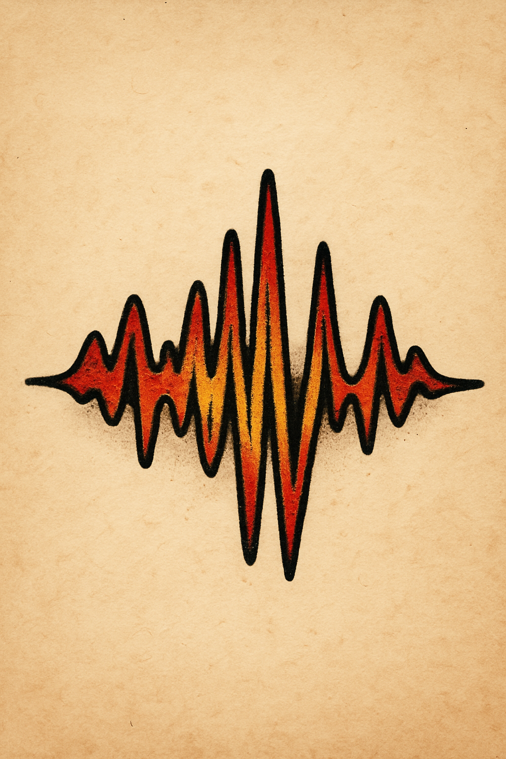 This image features a vibrant sound wave illustration with warm colors set against a textured vintage background. Ideal for music-related themes.