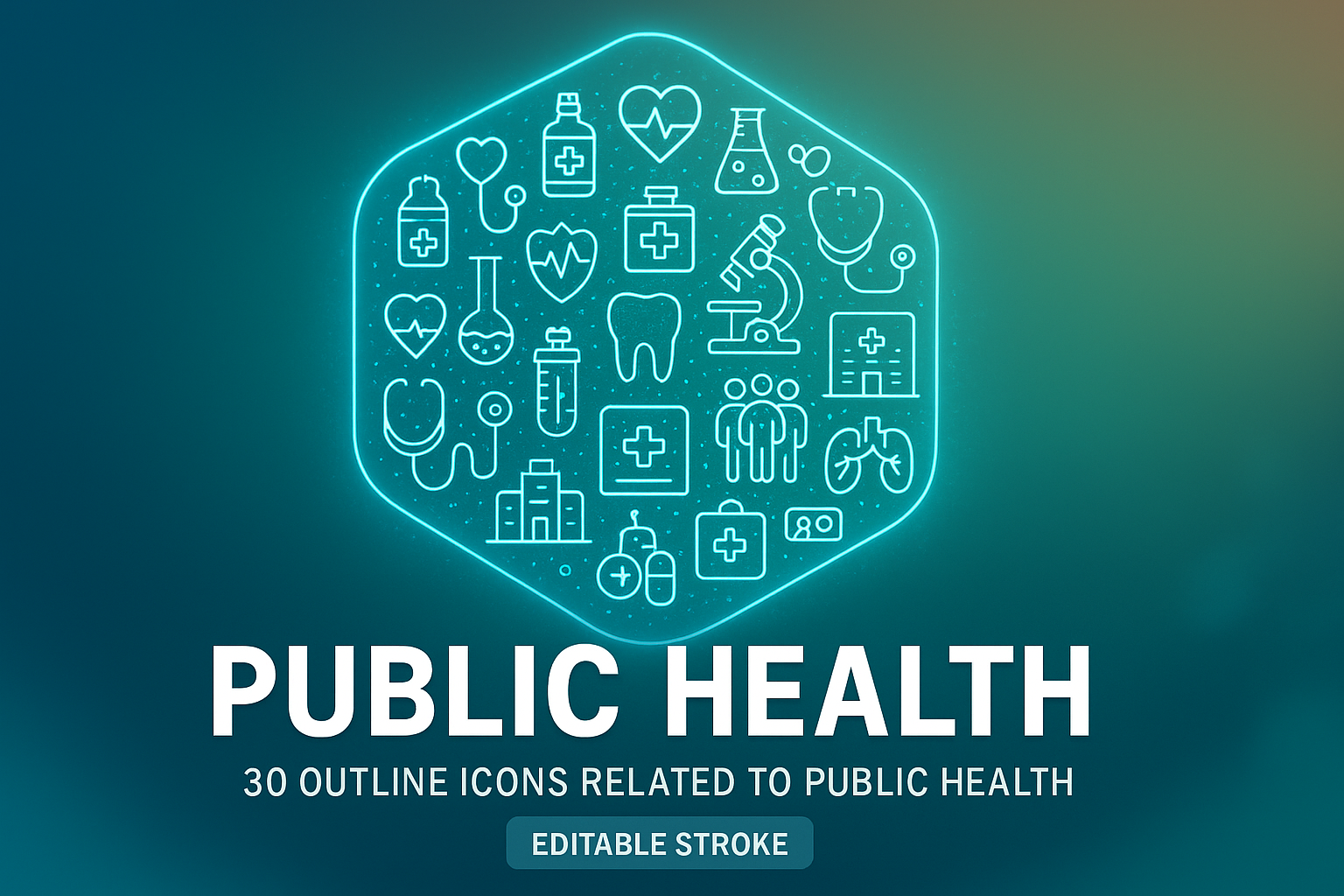 /Collection: /by davooda/Type: PNG/A graphic showcasing 30 outline icons related to public health, featuring medical symbols and healthcare elements. Ideal for educational materials and health-related presentations.