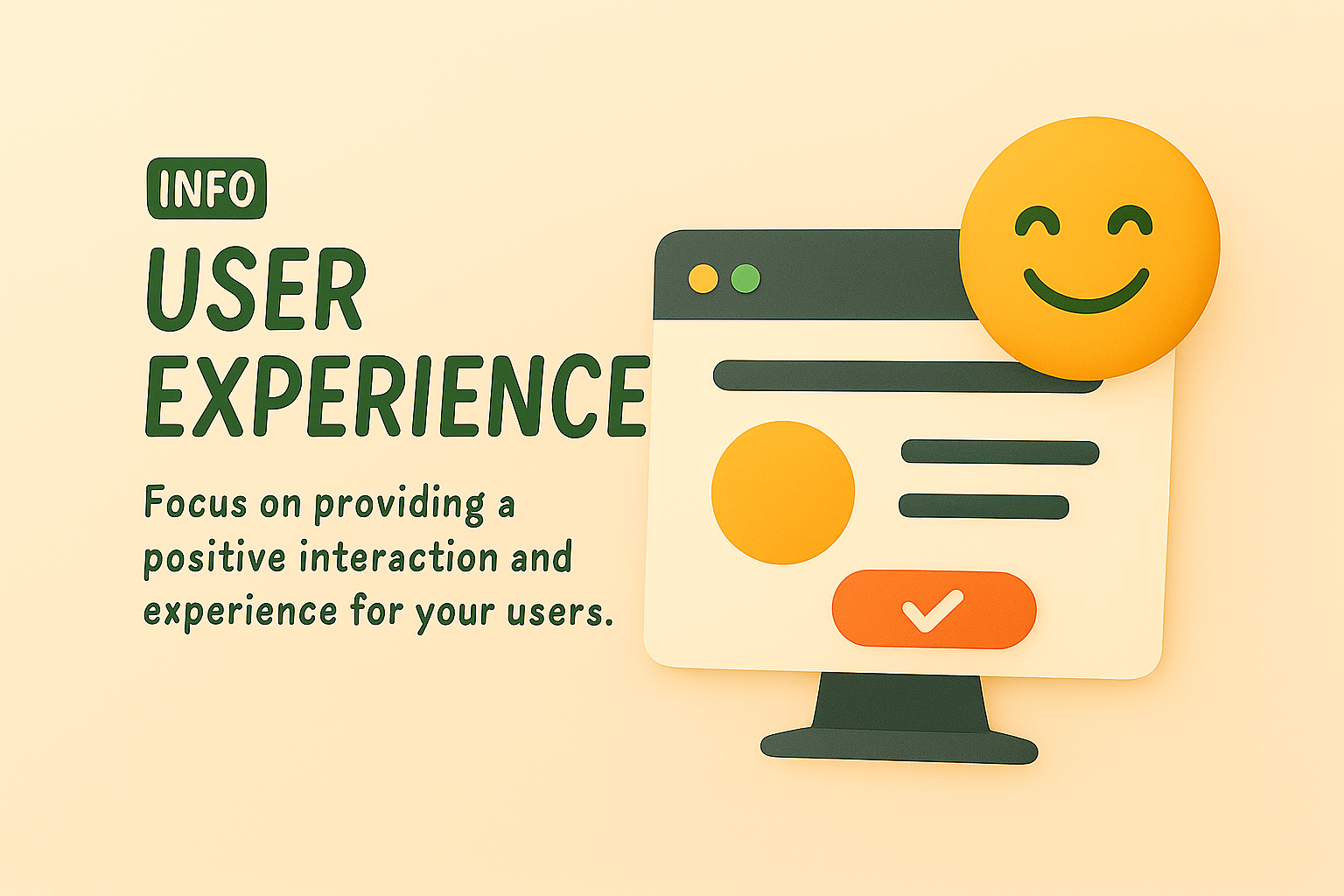 /Collection: /by davooda/Type: PNG/Colorful and engaging graphic illustrating the concept of user experience, featuring a computer screen and a happy emoji. Ideal for educational content or digital design discussions.