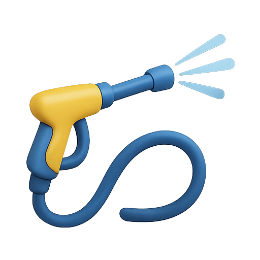 A colorful and stylized illustration of a water spray gun with blue and yellow accents, suitable for gardening or cleaning themes. Ideal for digital applications.