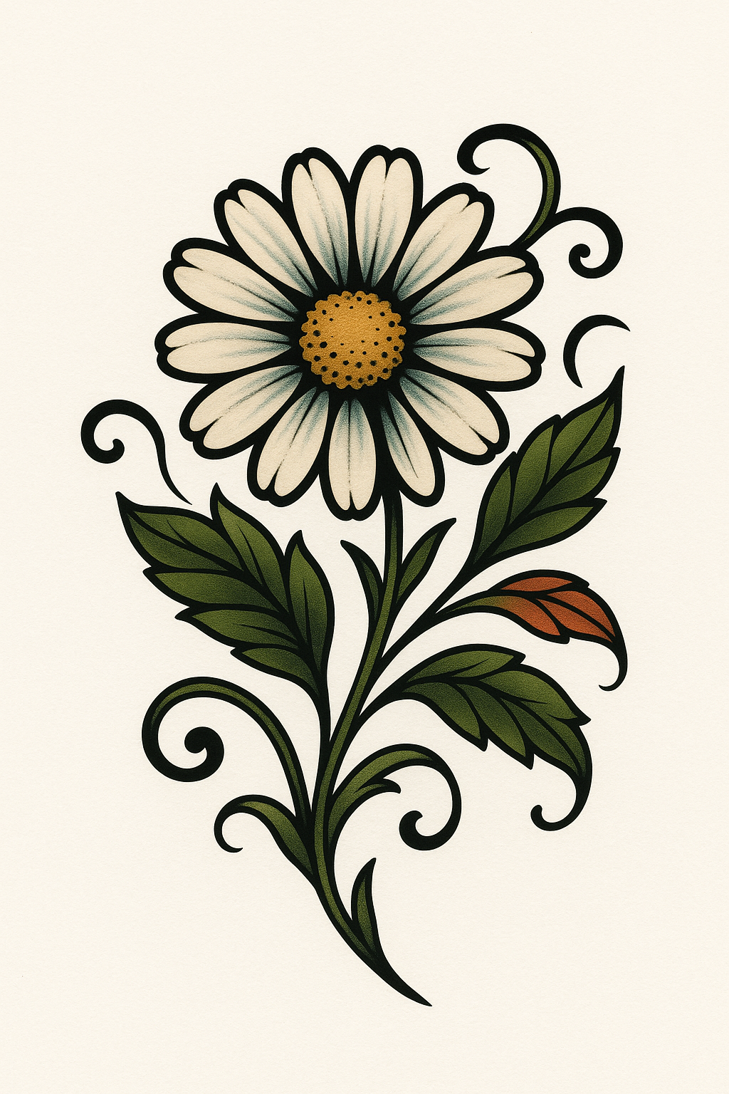 Stylized Floral Illustration of a Daisy with Intricate Details