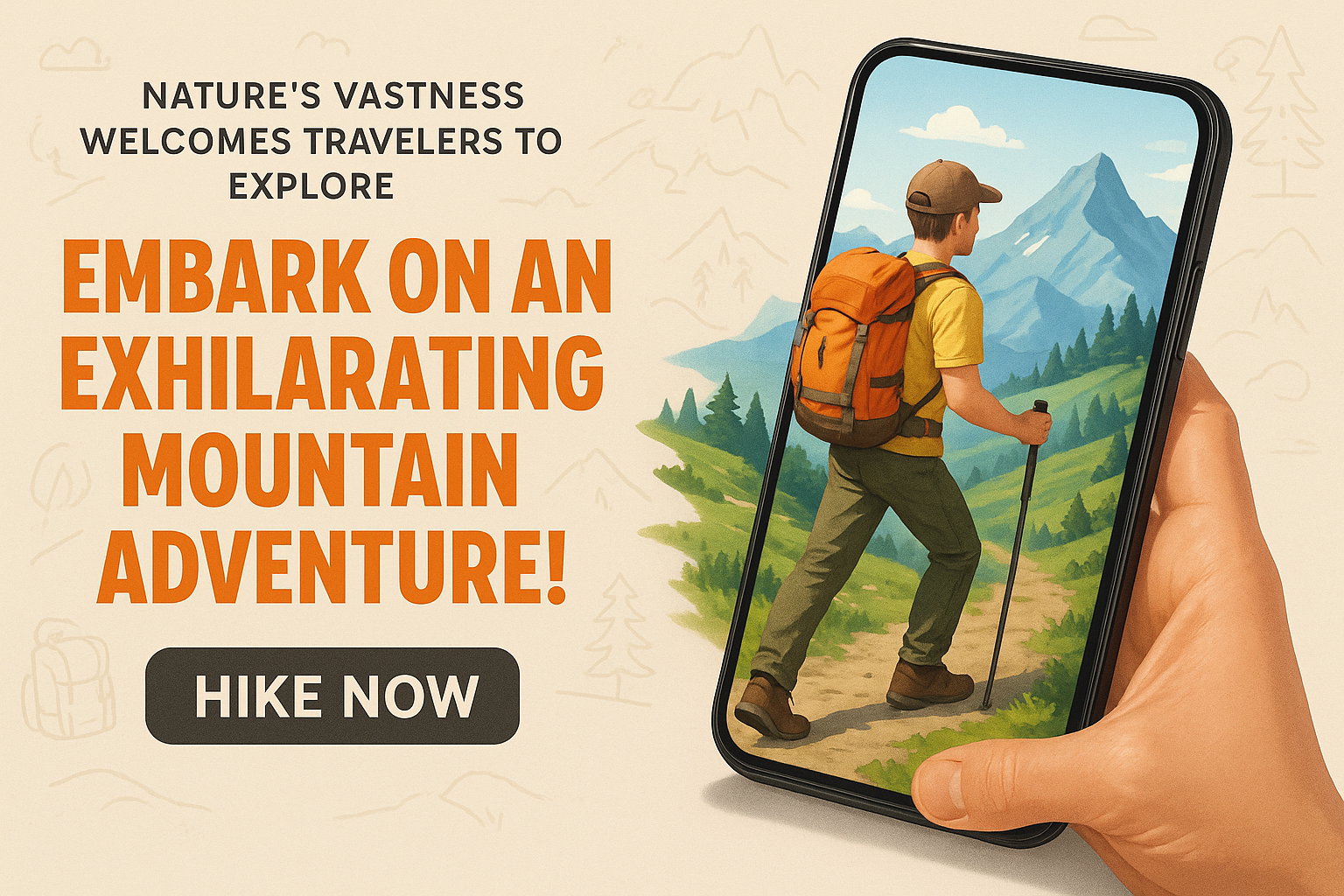 Exciting Mountain Adventure Advertisement with Smartphone Display