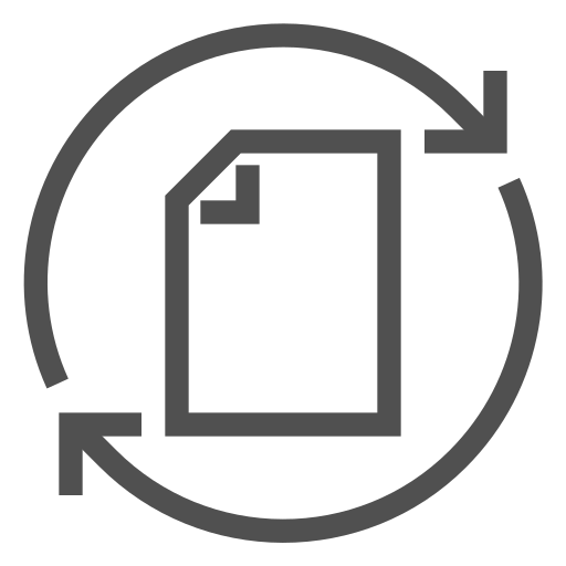 outline simple icon: circular arrow, document cycle, document flow, document management, file rotation