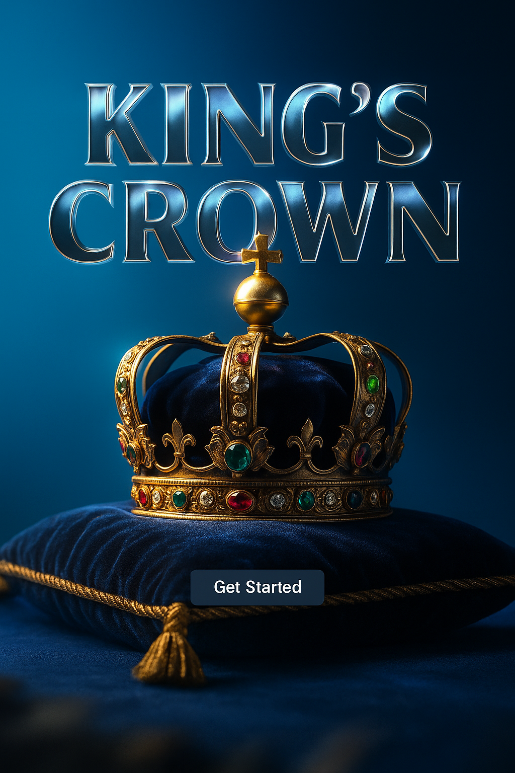 /Collection: /by davooda/Type: PNG/A beautifully detailed king's crown sits atop a blue velvet cushion, illuminated by a striking blue background. The crown features intricate jewels and gold accents, accompanied by dynamic text.