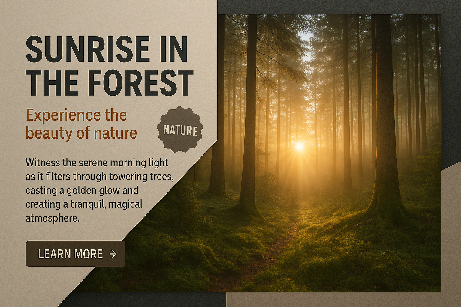 /Collection: /by davooda/Type: PNG/A tranquil forest scene at sunrise, where golden light filters through tall trees, creating a magical atmosphere. The composition features a balanced layout with engaging design elements.