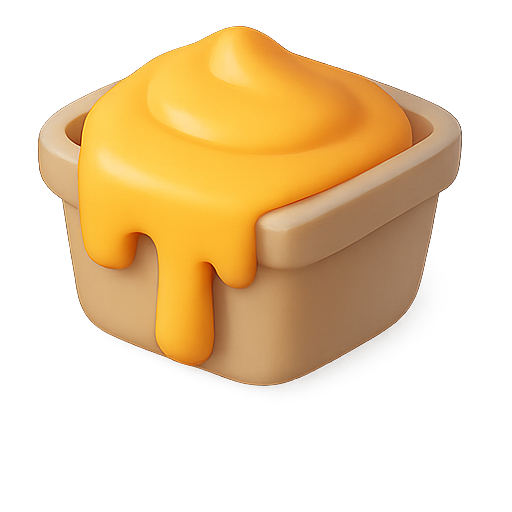 A visually appealing 3D illustration of a bowl filled with melted cheese, showcasing smooth textures and a vibrant color palette, ideal for food-related graphics.