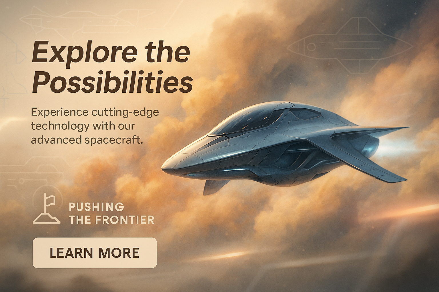 Engaging promotional graphic featuring a futuristic spacecraft against a dramatic cloud backdrop, designed to attract tech enthusiasts and space exploration fans.