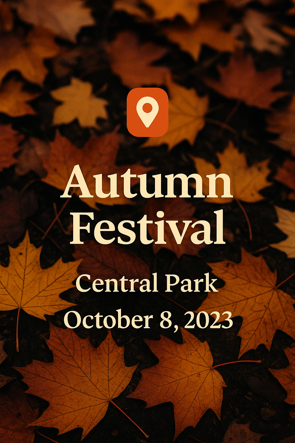 A visually appealing event poster featuring autumn leaves with stylish typography, ideal for promoting a seasonal festival in a park setting.