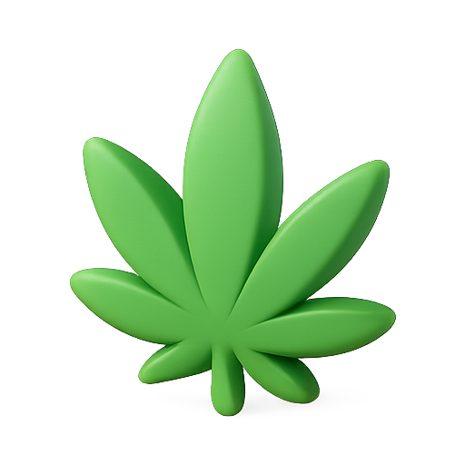Stylized 3D representation of a green cannabis leaf, ideal for use in branding related to cannabis culture, health, or lifestyle. Its smooth, modern design appeals to a youthful audience.