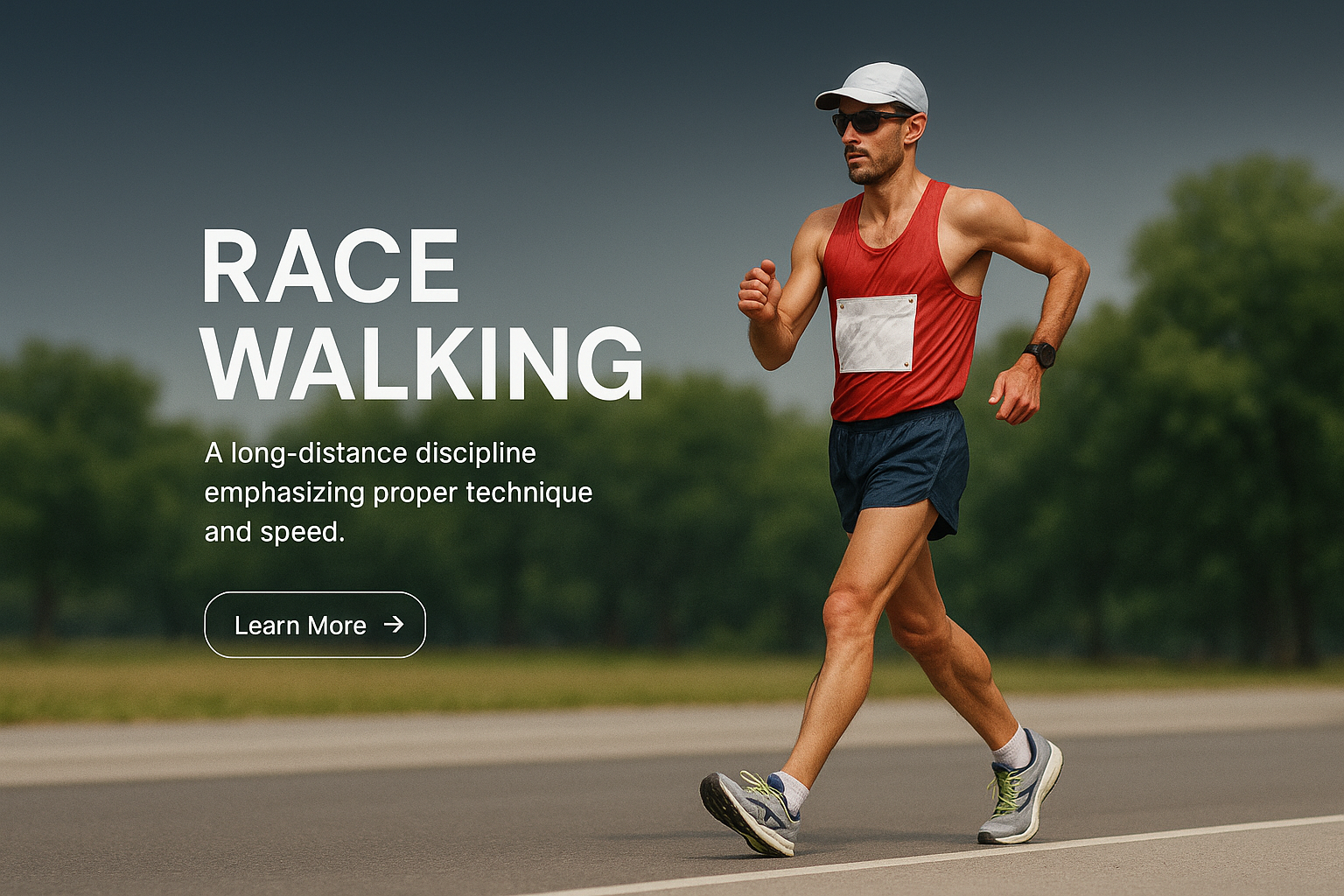 /Collection: /by davooda/Type: PNG/A dynamic race walker in a red tank top and shorts strides confidently on a road, showcasing technique. The background features a gradient from dark to white, enhancing focus on the athlete.