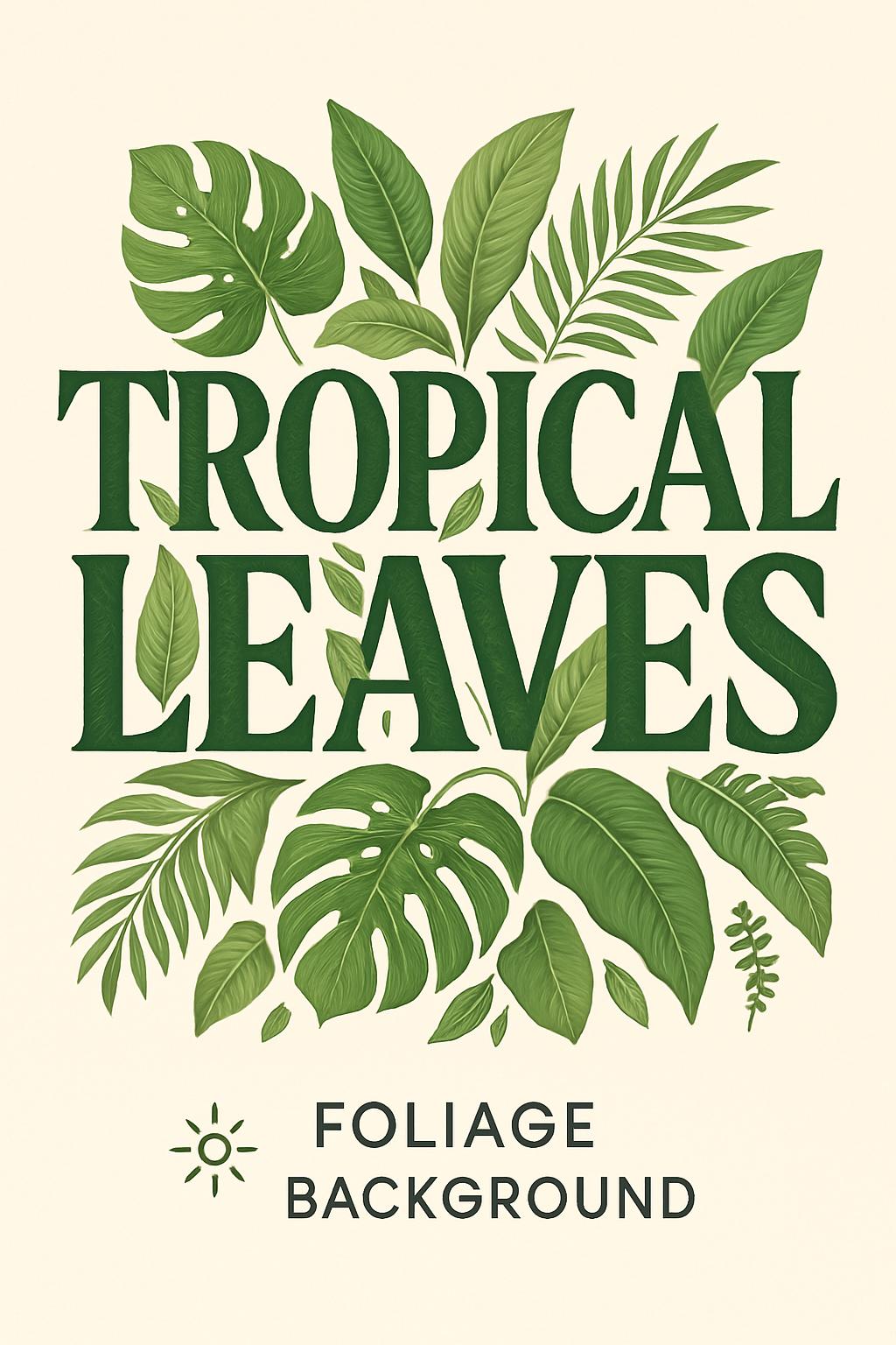 Stylized illustration of tropical leaves with bold lettering, ideal for nature-themed projects, invitations, or eco-friendly branding.